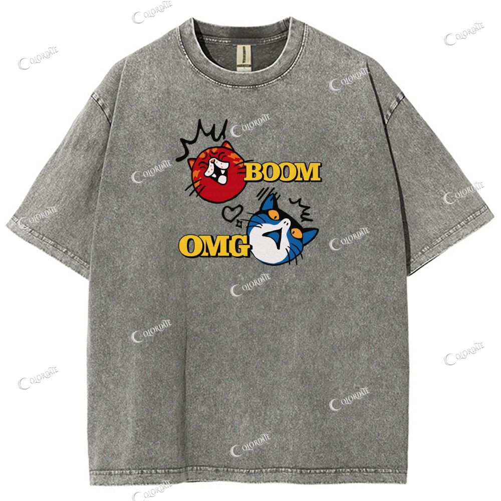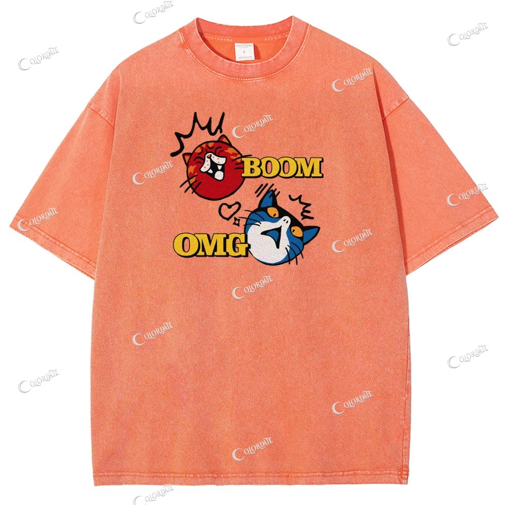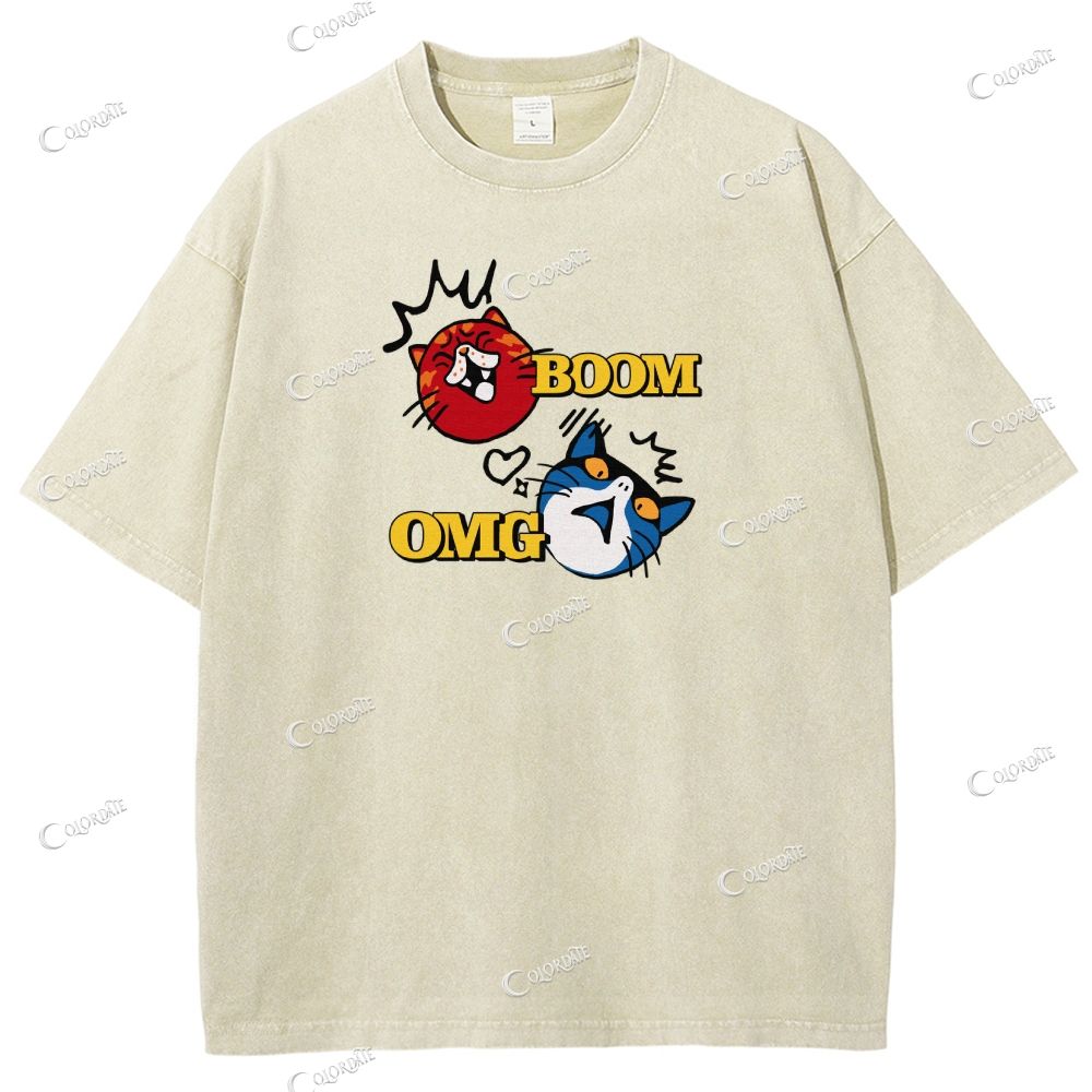 Unisex Boom Omg Letter Printed Washed Tee