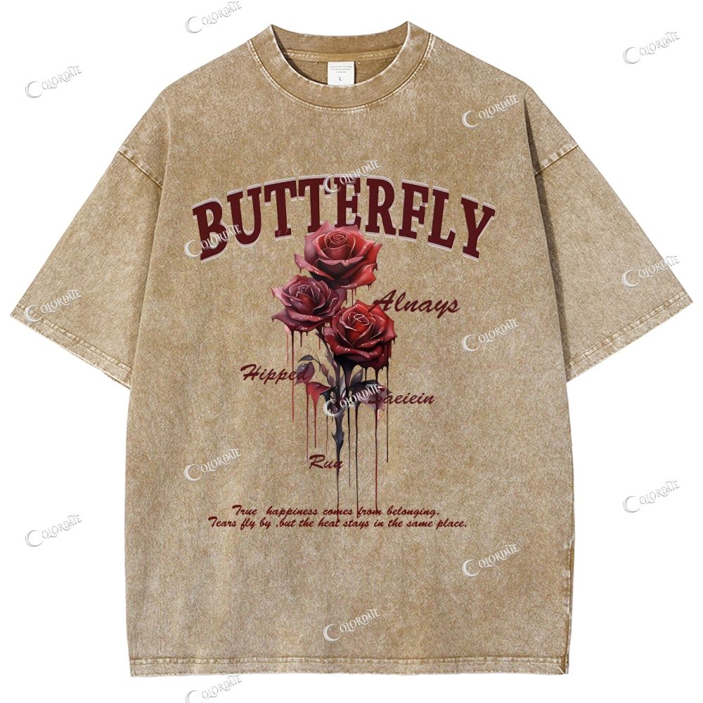 Unisex Rose Printed Washed Tee