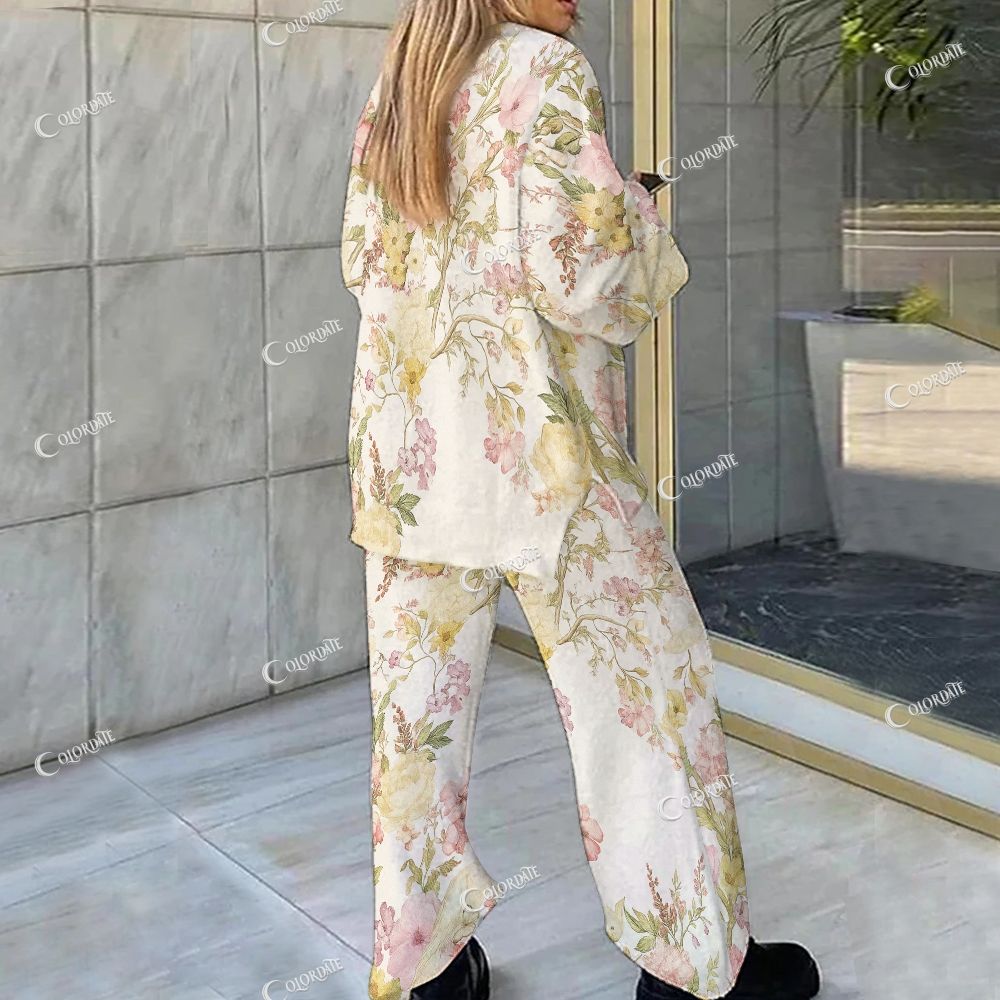 Watercolor Floral & Butterfly Print Loungewear Set For Women