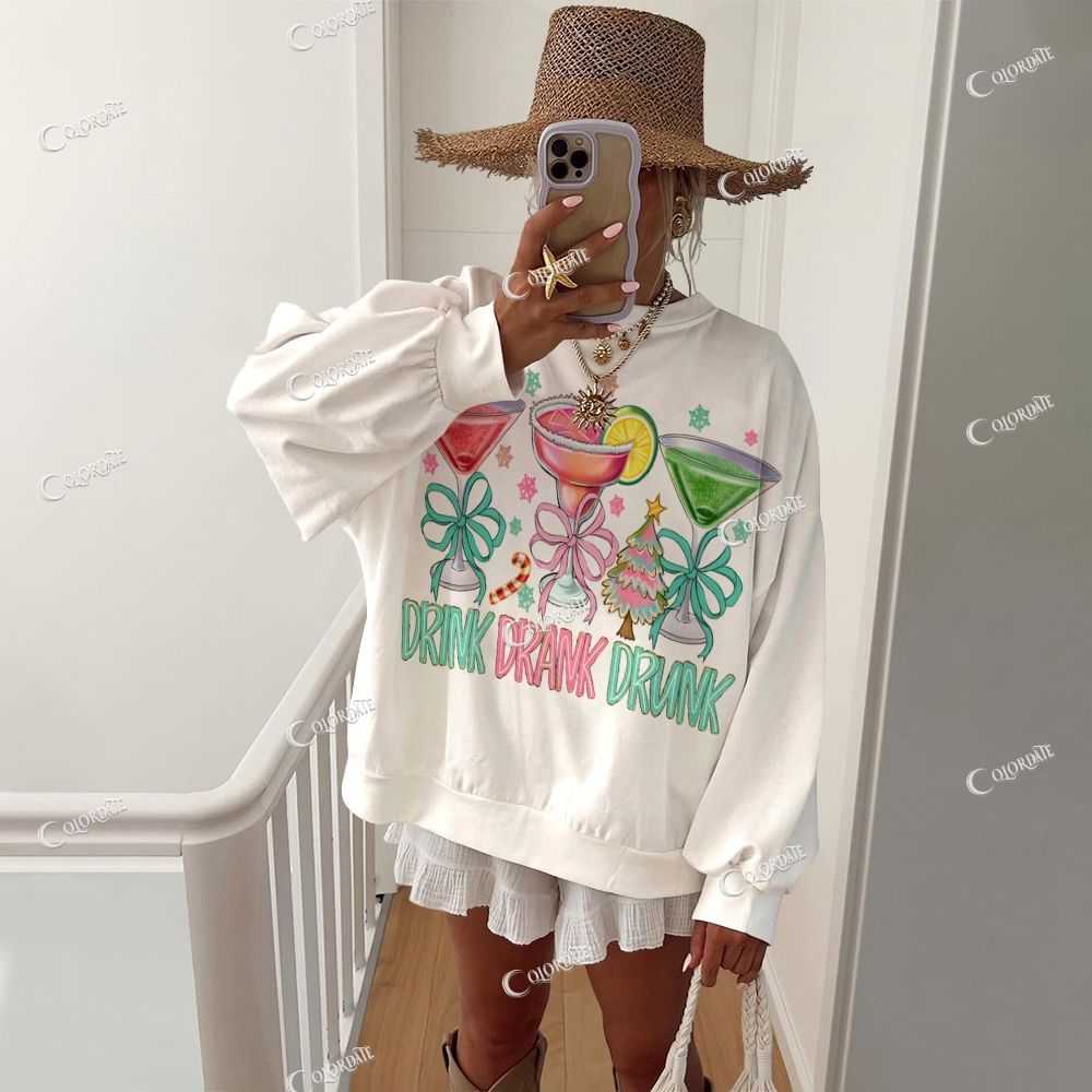 Women's A Christmas Drink Casual Crew Neck Sweatshirt