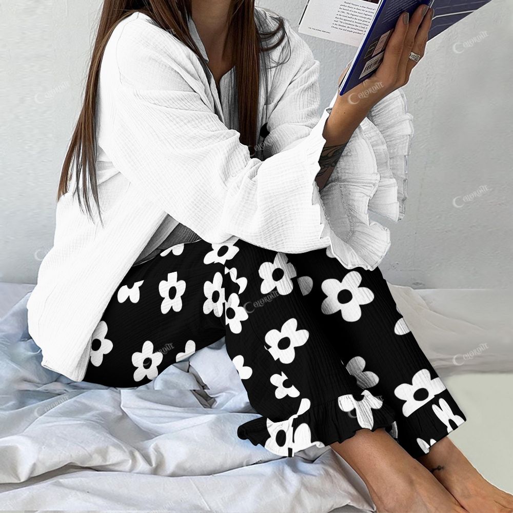 Women's A Small Black Flower Vintage Printed Suit