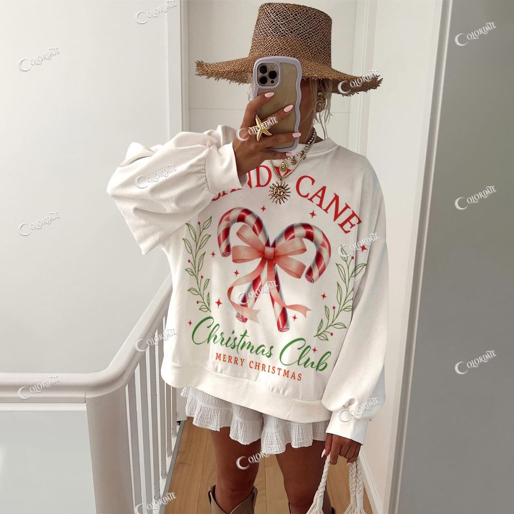 Women's Candy Cane Print Casual Crew Neck Sweatshirt
