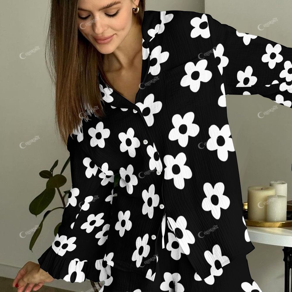Women's Chic Retro Black Flowers Vintage Printed Suit