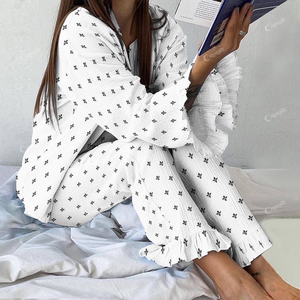 Women's Chic Small Leaf Pattern Vintage Printed Suit