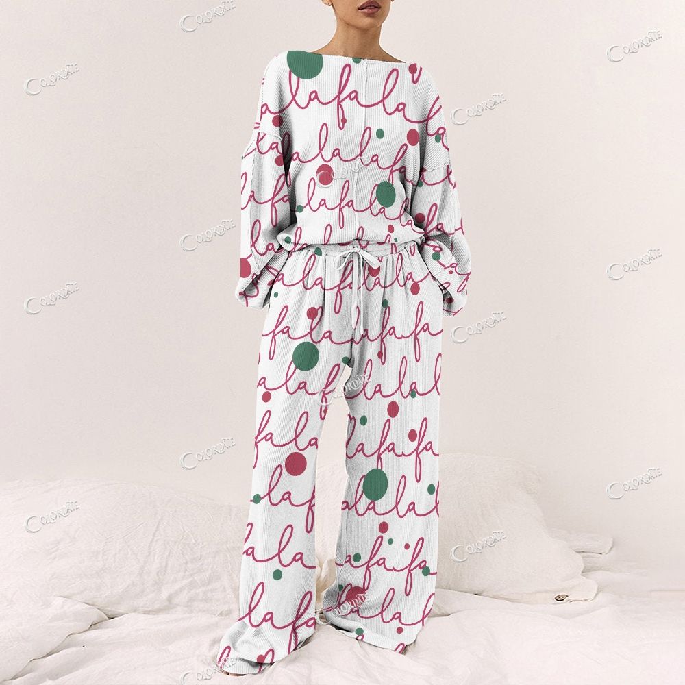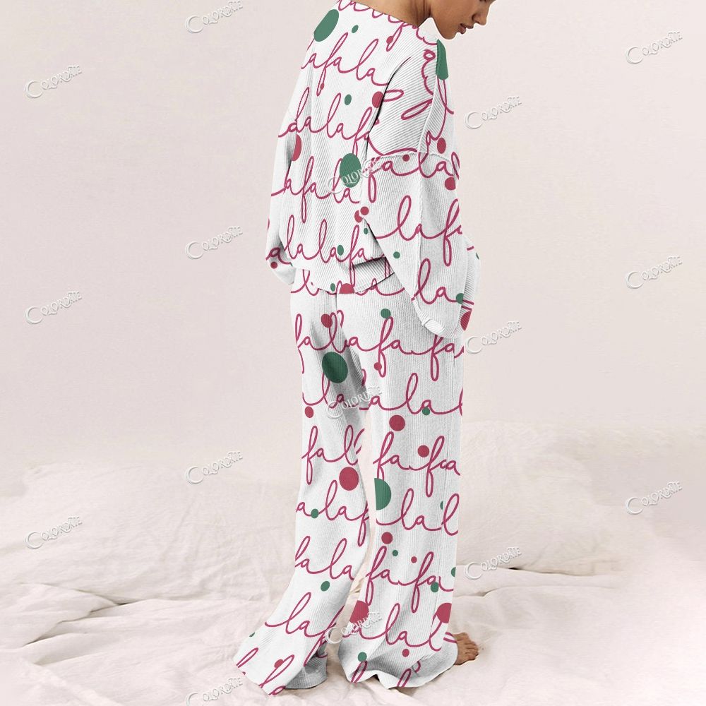 Women's Christmas La La La Print Long Sleeve Pajama Set