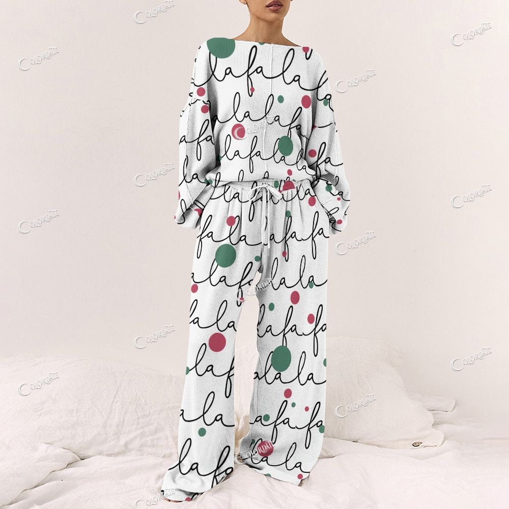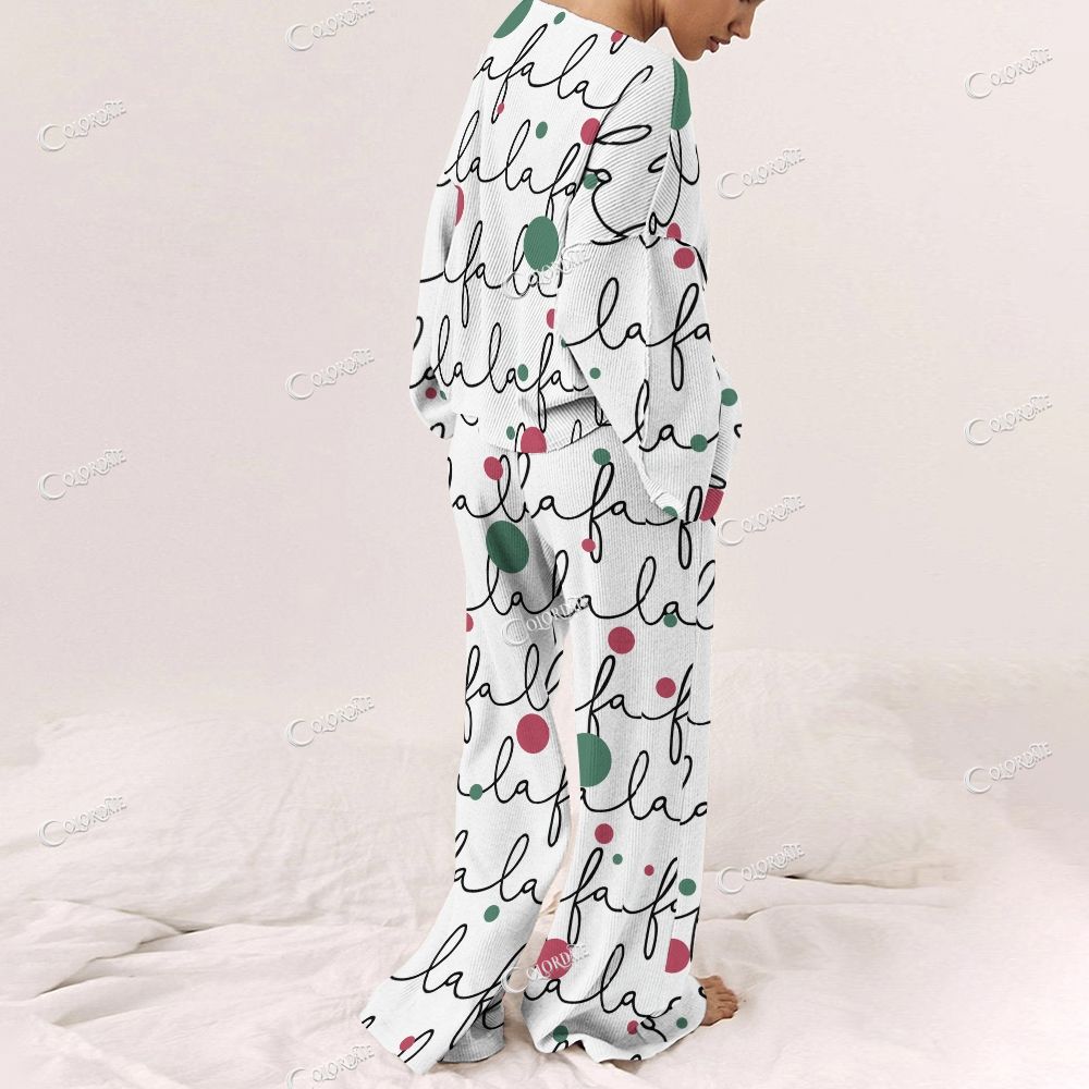 Women's Christmas La La Print Long Sleeve Pajama Set