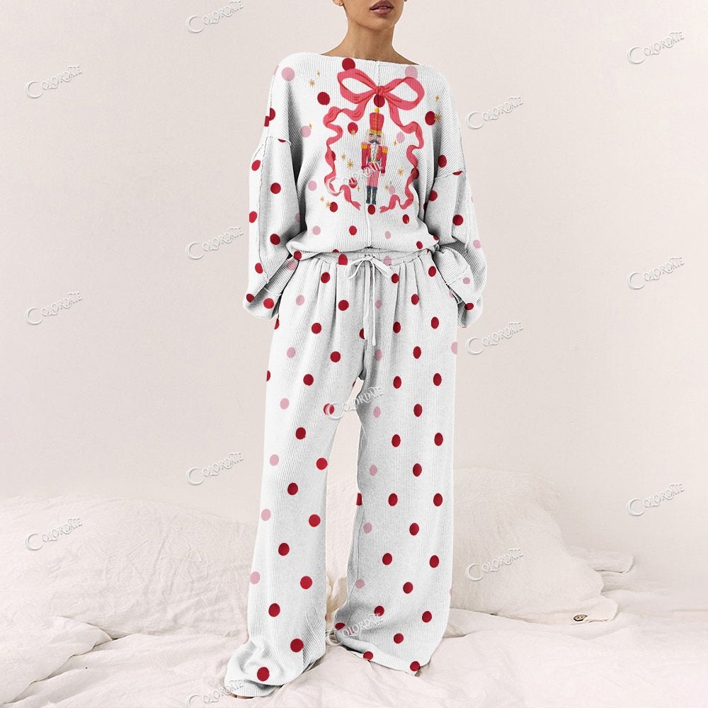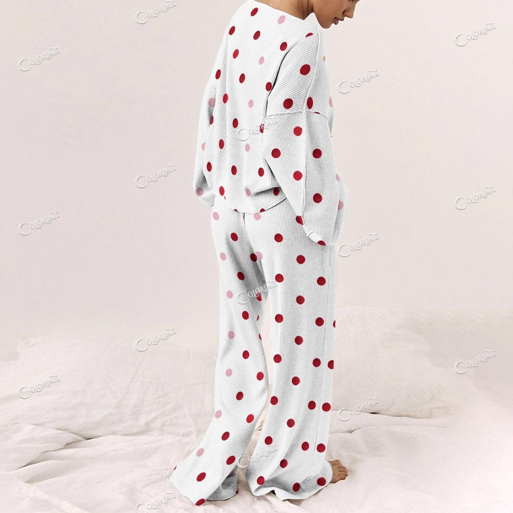 Women's Christmas Polka Dot Party Print Long Sleeve Pajama Set