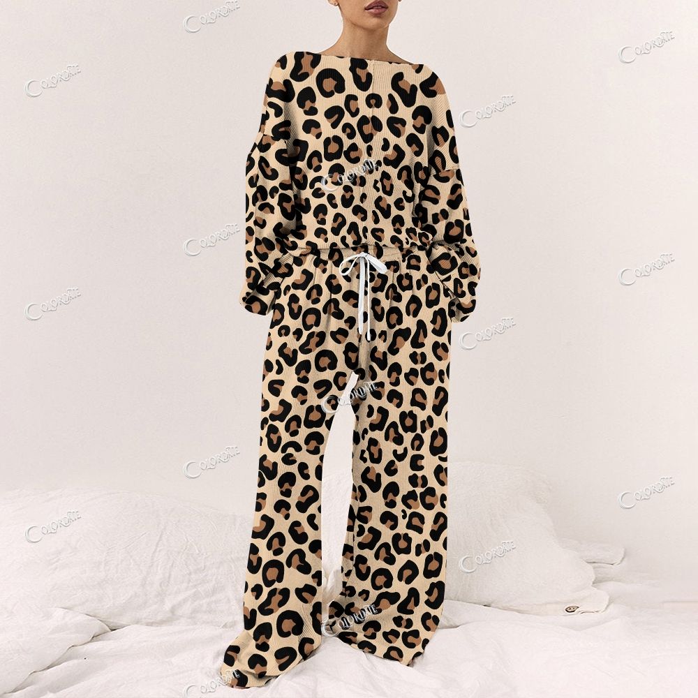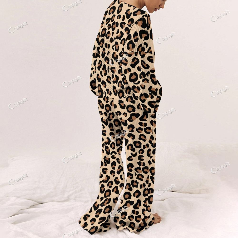 Women's Classic Romantic Leopard Print Long Sleeve Pajama Set