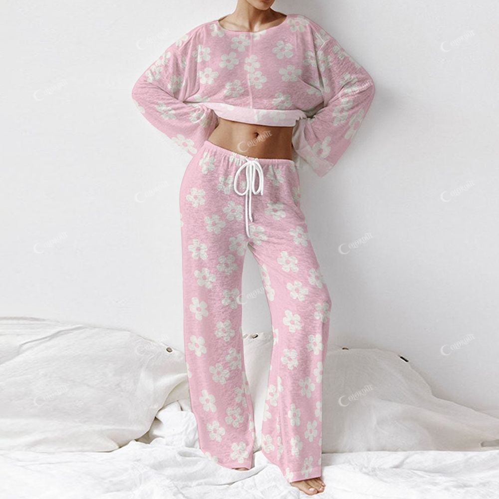 Women's Fresh Pink Flowers Long Sleeve Cotton Homewear Set