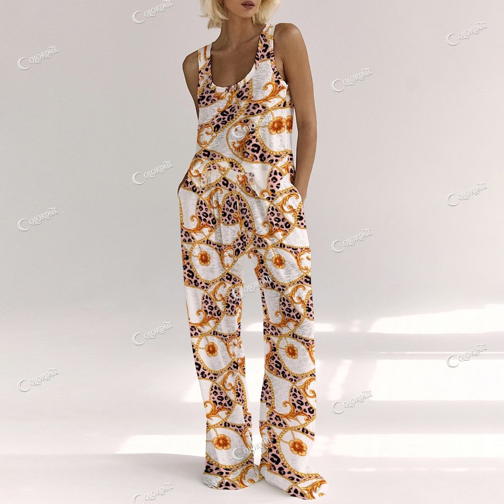Women's Leopard Baroque Print Vest and Pants Set