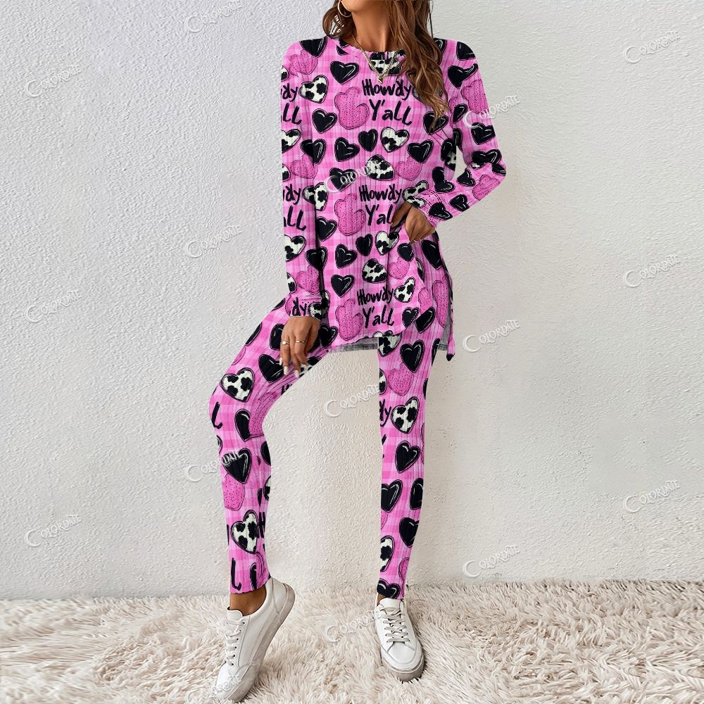 Women's Pink & Black Sweetheart Print Long Sleeve Suit