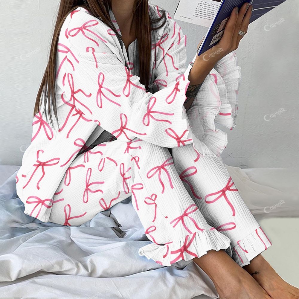 Women's Pink Ribbon Bow Vintage Printed Suit