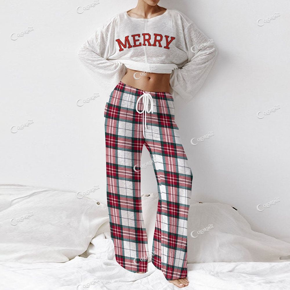 Women's Simple Christmas Plaid Long Sleeve Cotton Homewear Set