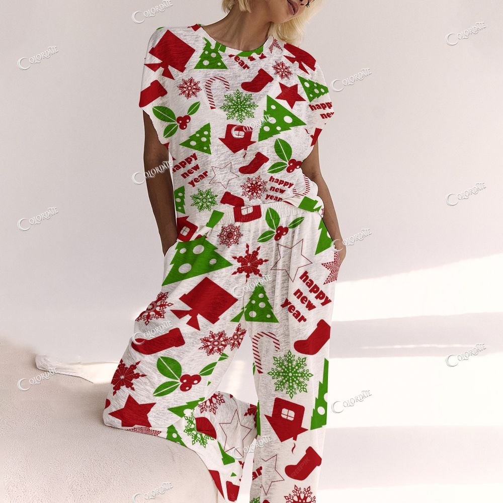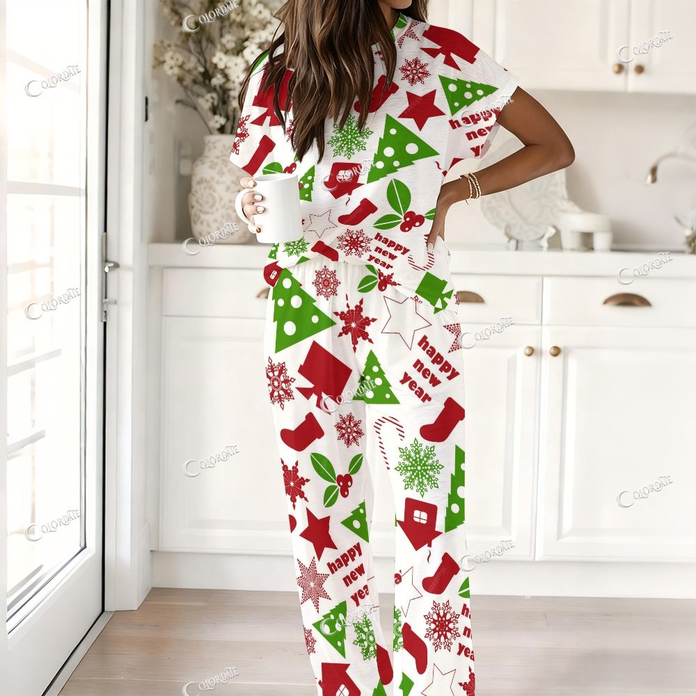 Colordate Christmas Pattern Print Loungewear Set For Women