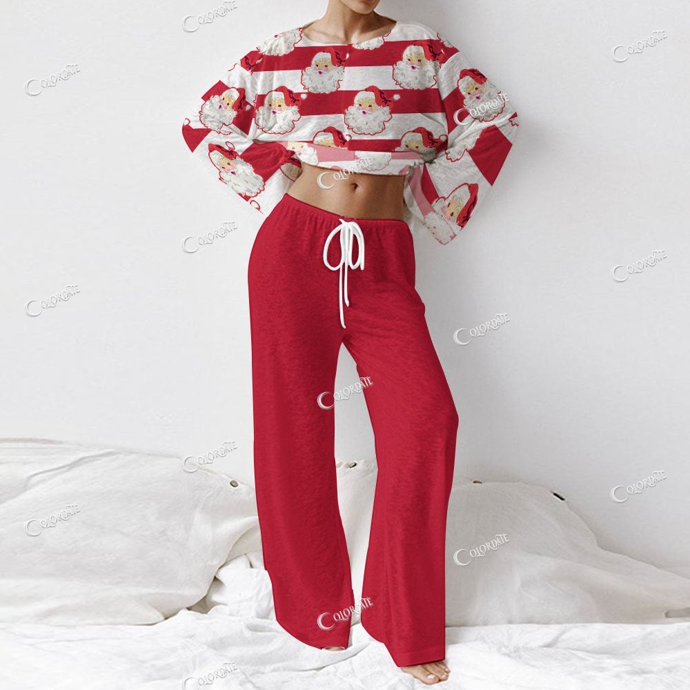 Colordate Santa Claus Print Loungewear Set For Women