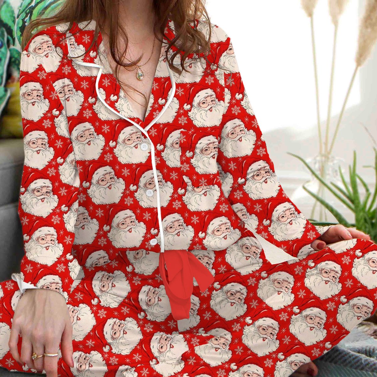 Women's Christmas Santa Claus Pattern Long Sleeve Pants Suit