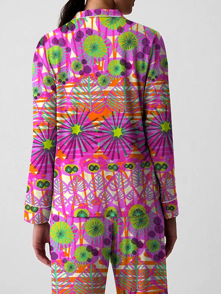 Women's Classic Art Geometric Colorful Floral Print Pattern Pajama Set