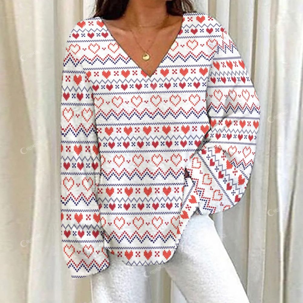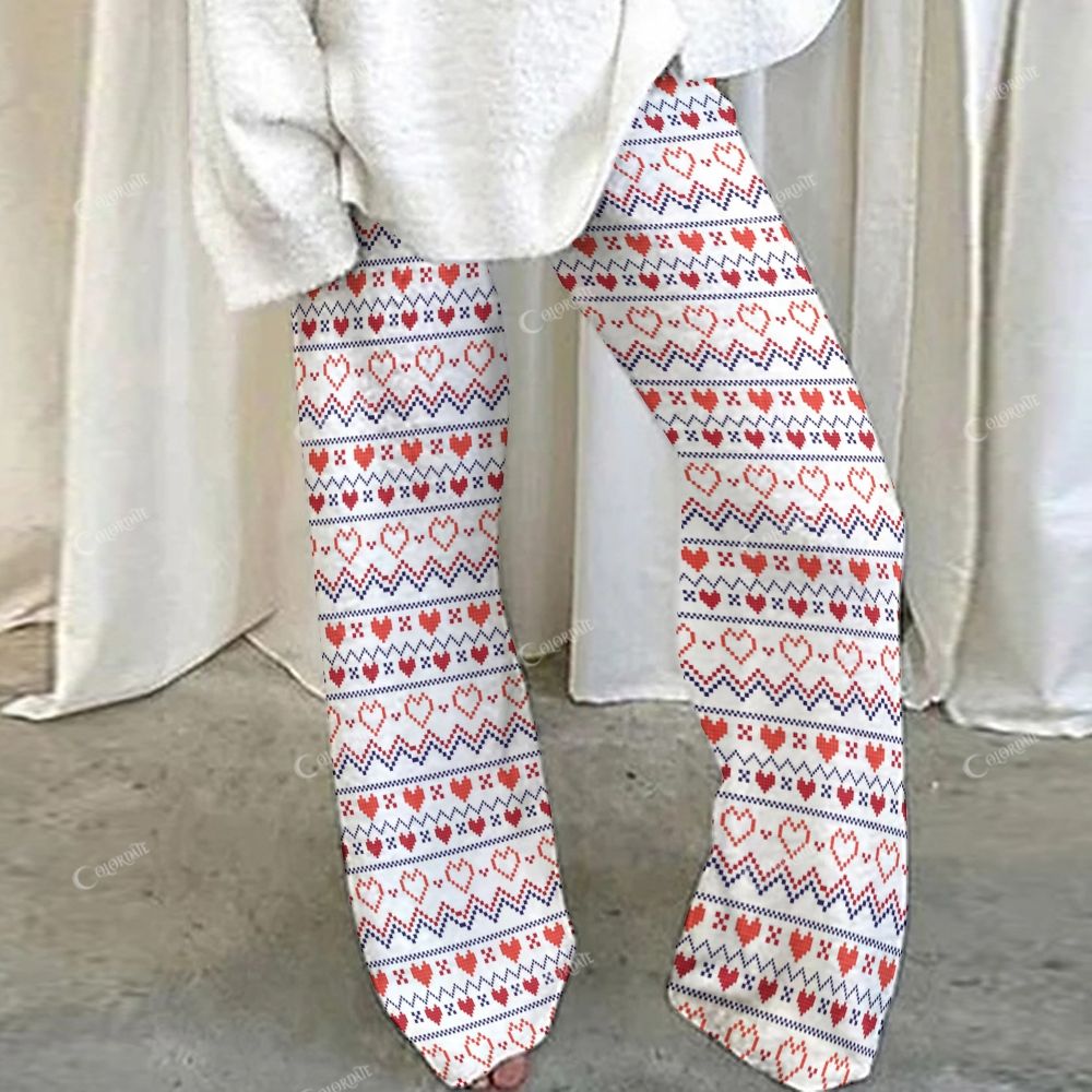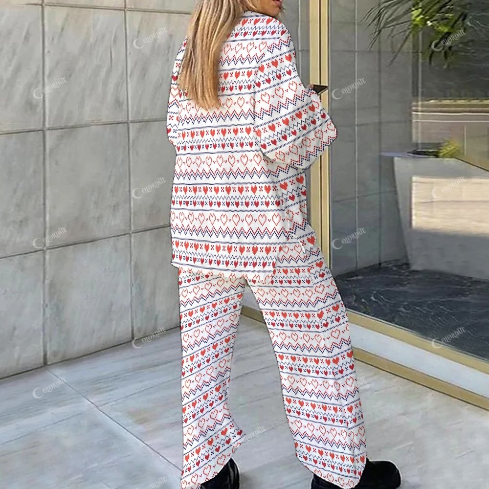 Colordate Pixel Heart Print Loungewear Set For Women