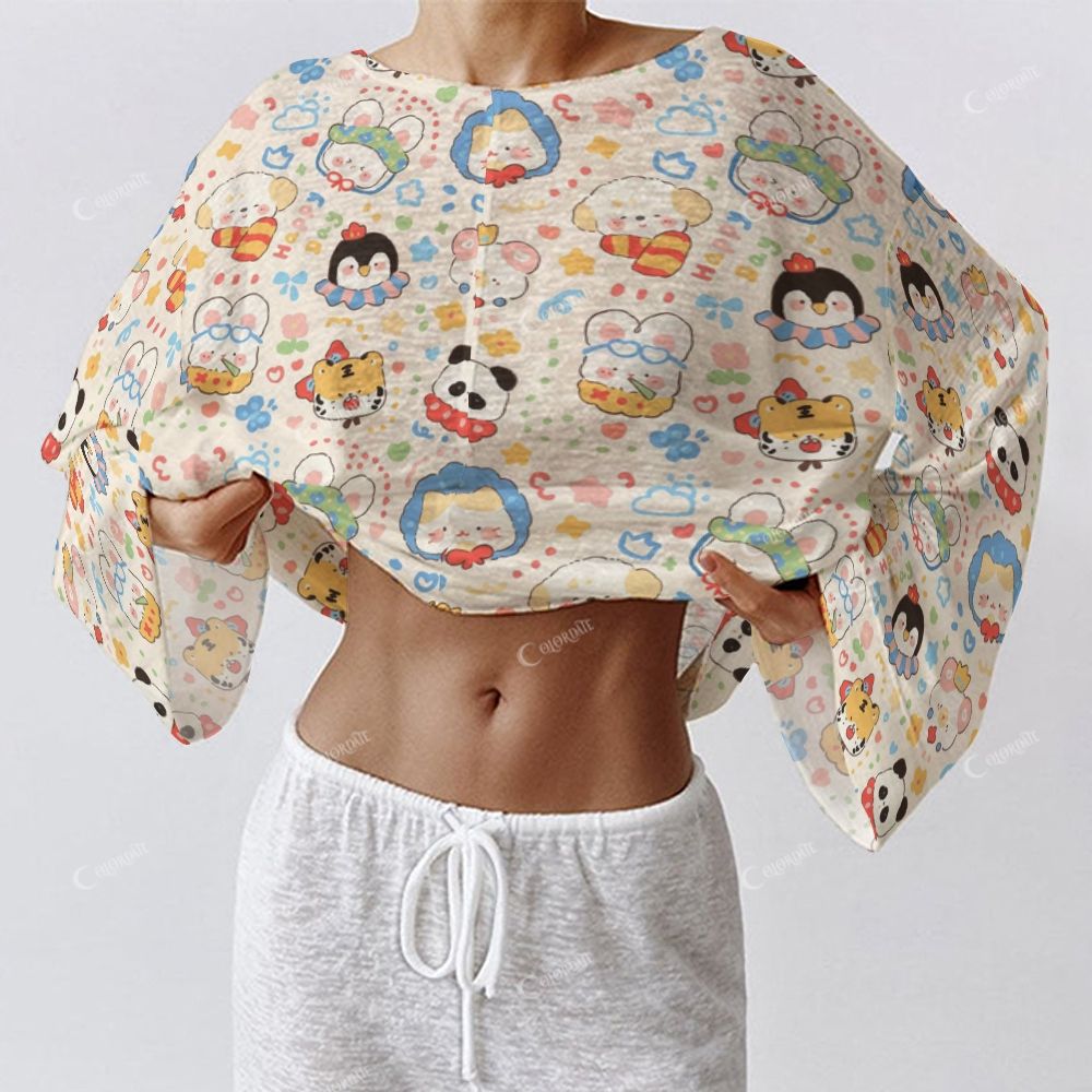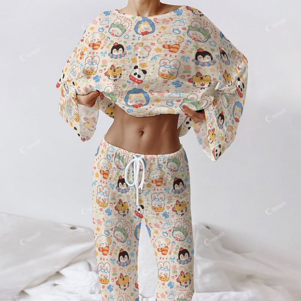 Colordate Women's Cute Animal Print Long Sleeve Cotton Homewear Set