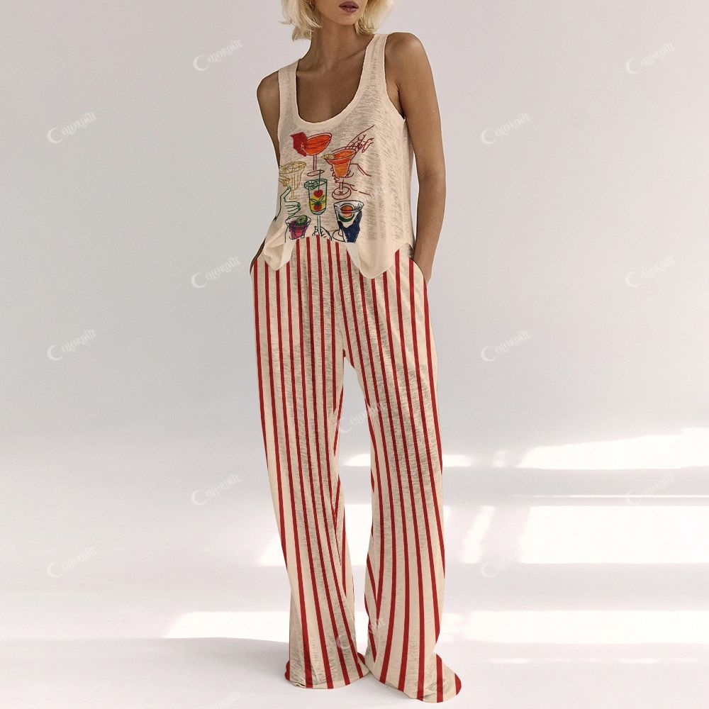Colordate Women's Drinking Party Print Vest and Pants Set