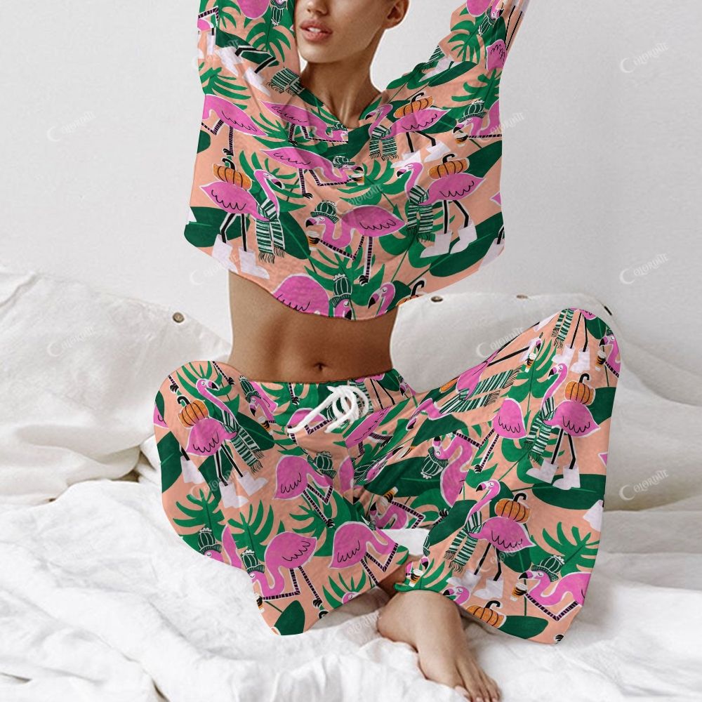 Colordate Women's Flamingo Print Long Sleeve Homewear Set
