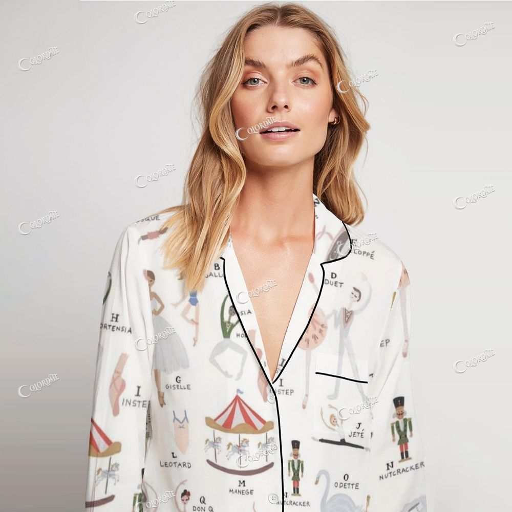 Women's Vintage Print White Print Home Long Sleeve Suit
