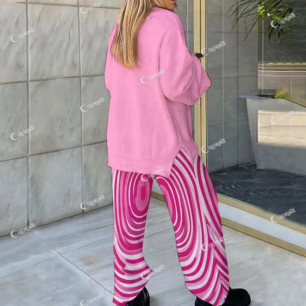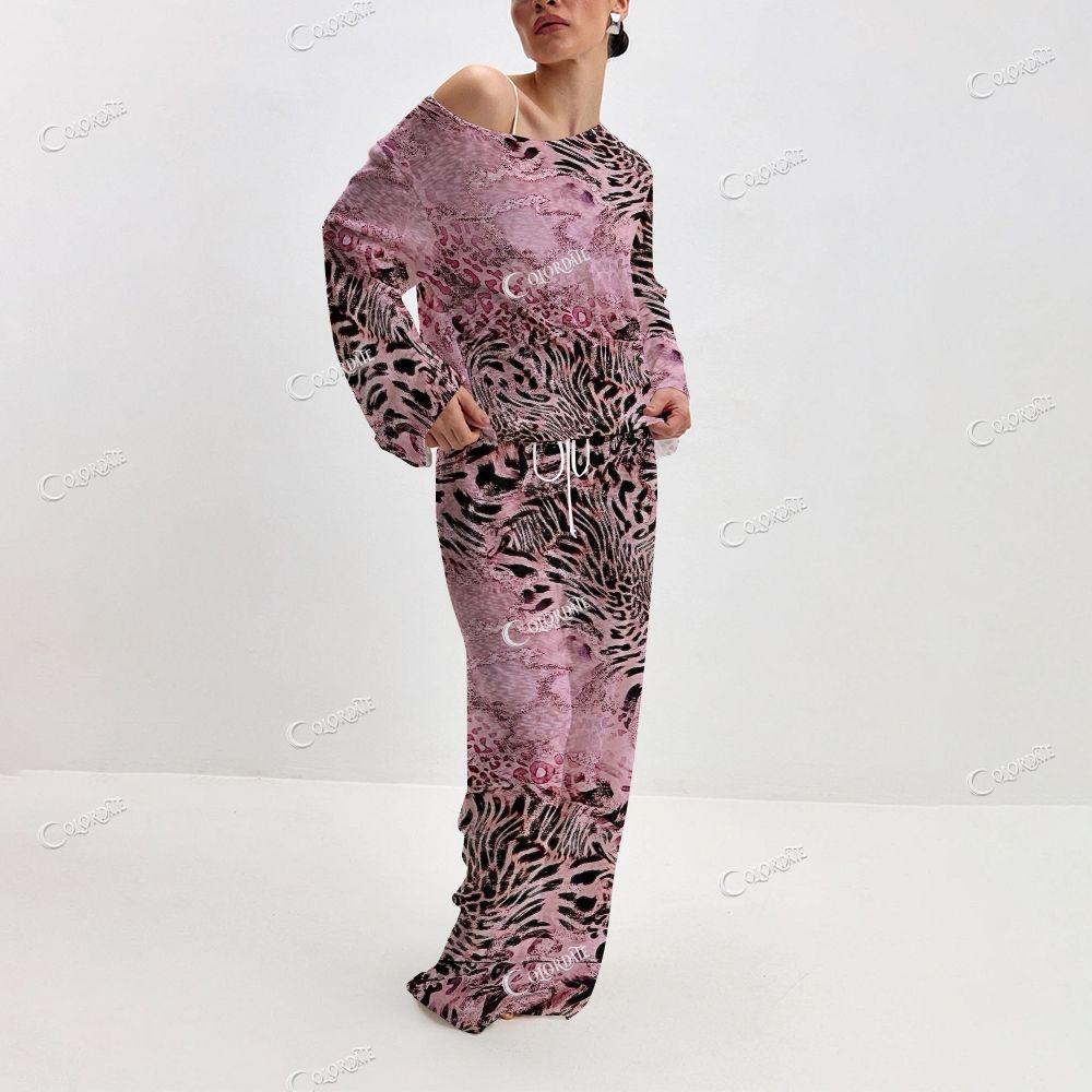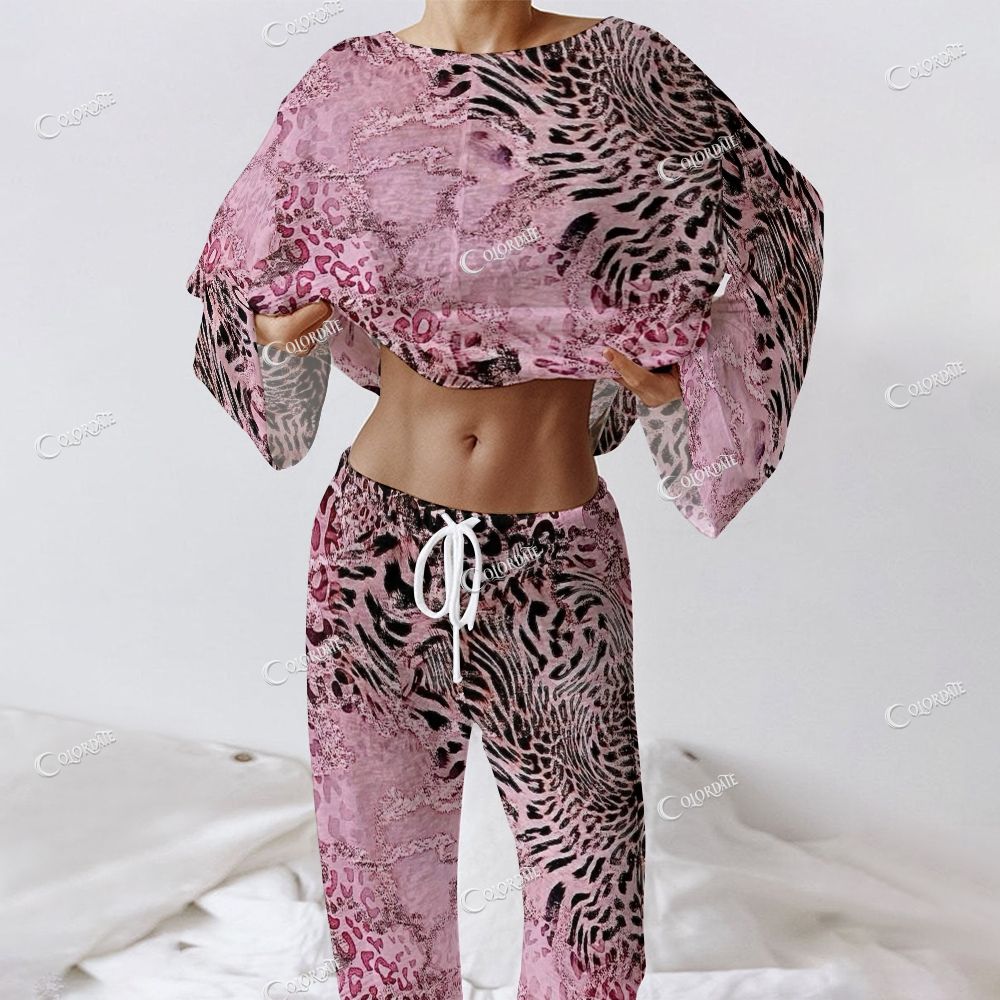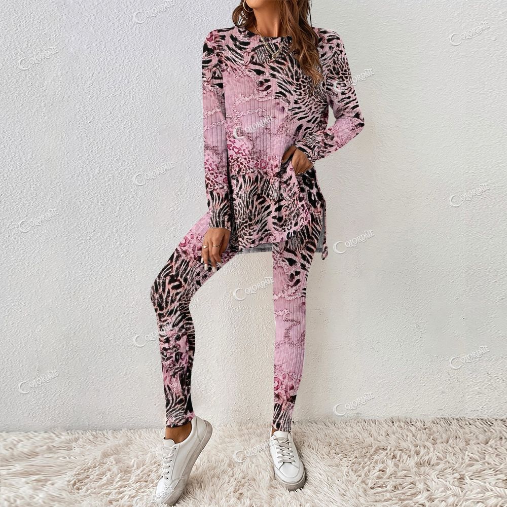 Women's Pink Leopard Zebra Print Long Sleeve Suit