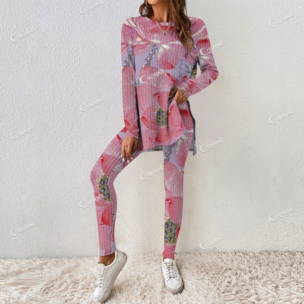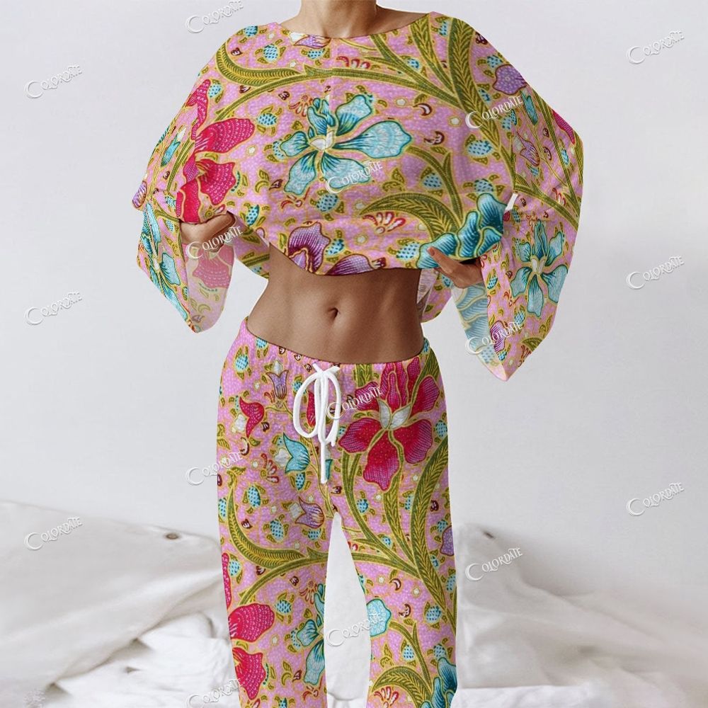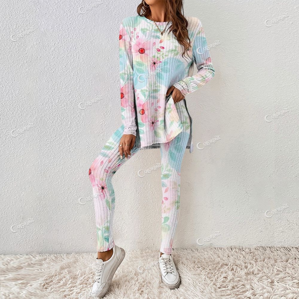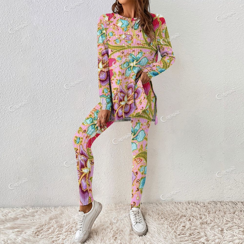 Women's Vibrant Watercolor Floral Long Sleeve Suit