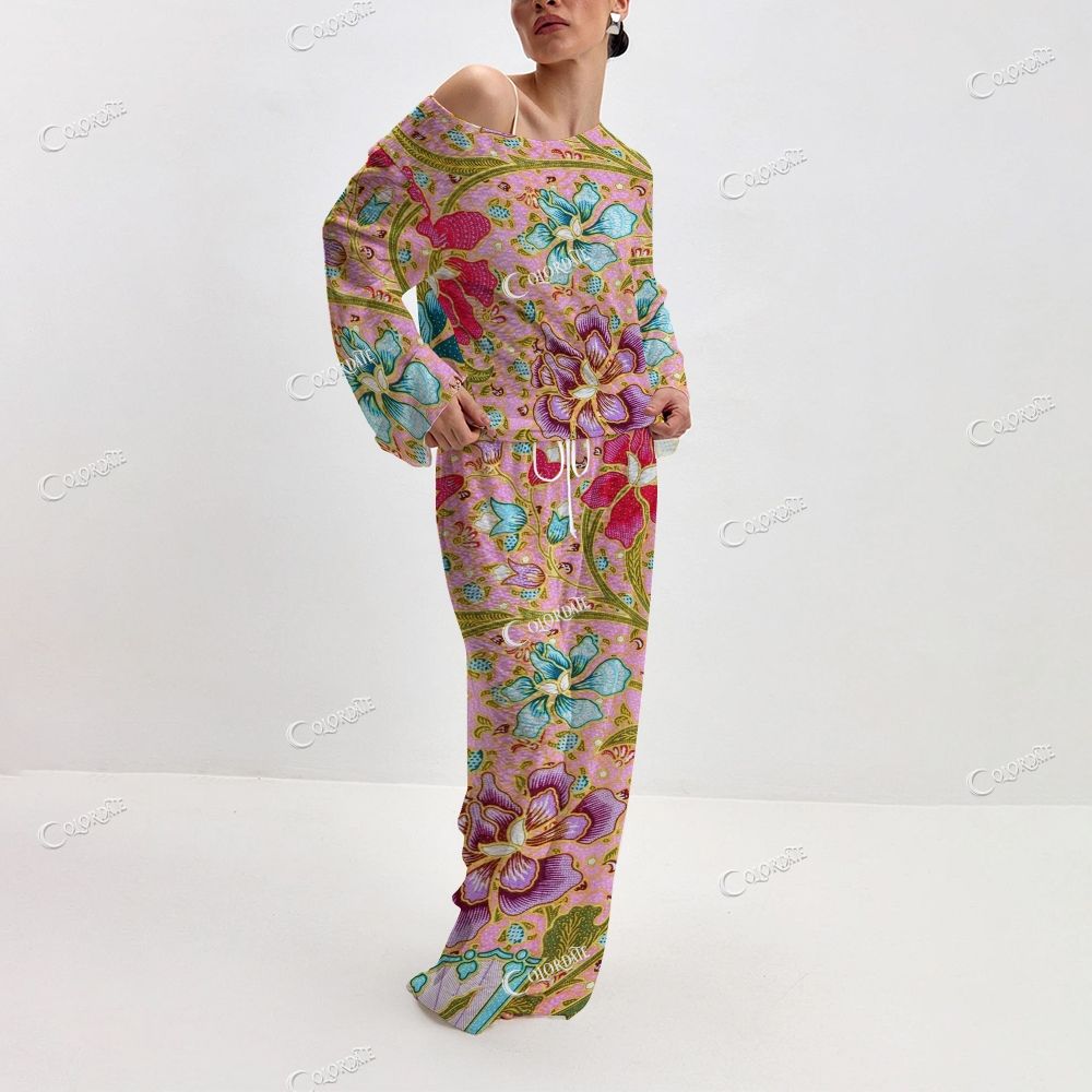 Women's Colored Floral Print Long Sleeve Cotton Homewear Set