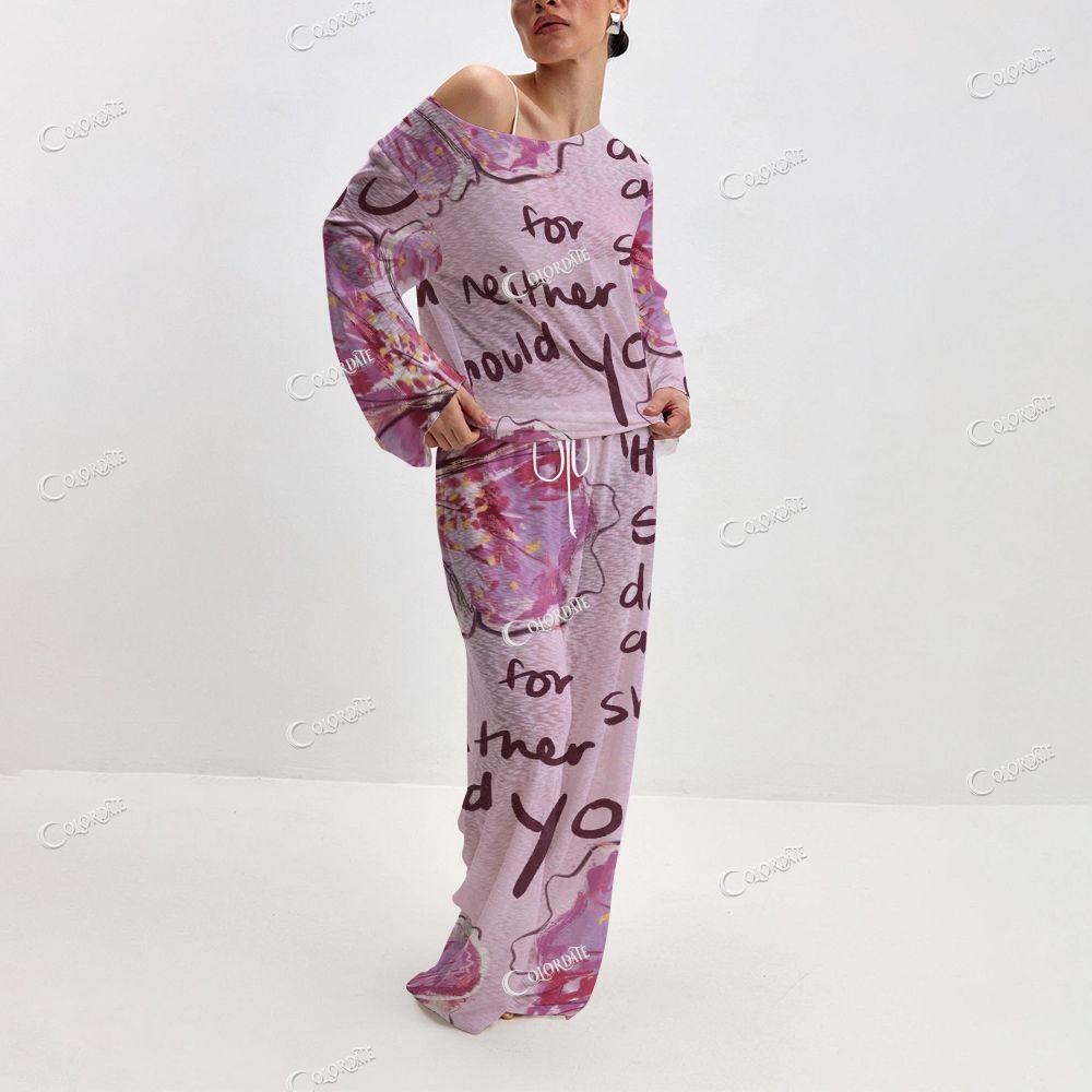 Women's Handwritten Text Print Long Sleeve Cotton Homewear Set