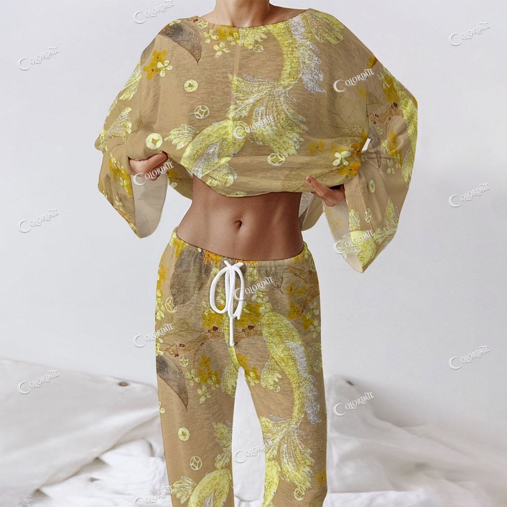 Women's Golden Koi Print Long Sleeve Cotton Homewear Set