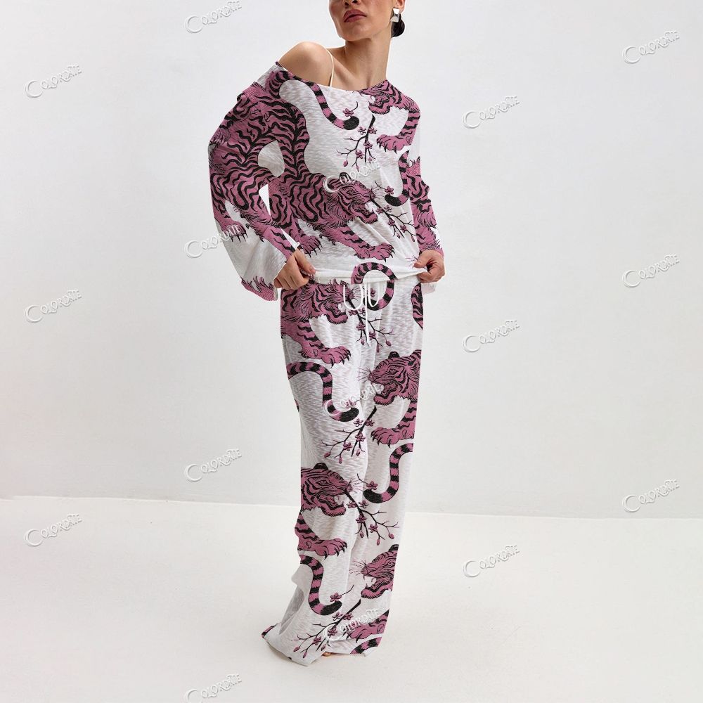Women's Pink Tiger Print Long Sleeve Cotton Homewear Set