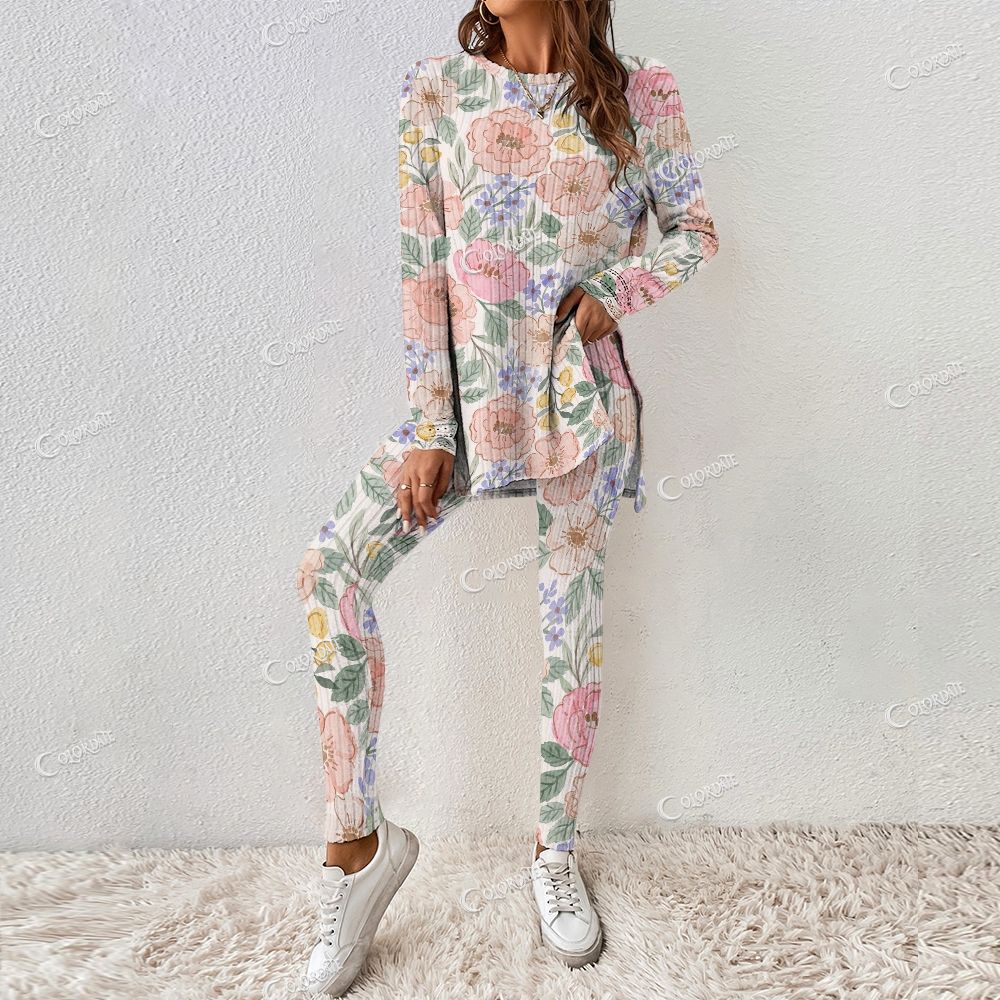 Colordate Women's Floral Print Long Sleeve Homewear Set