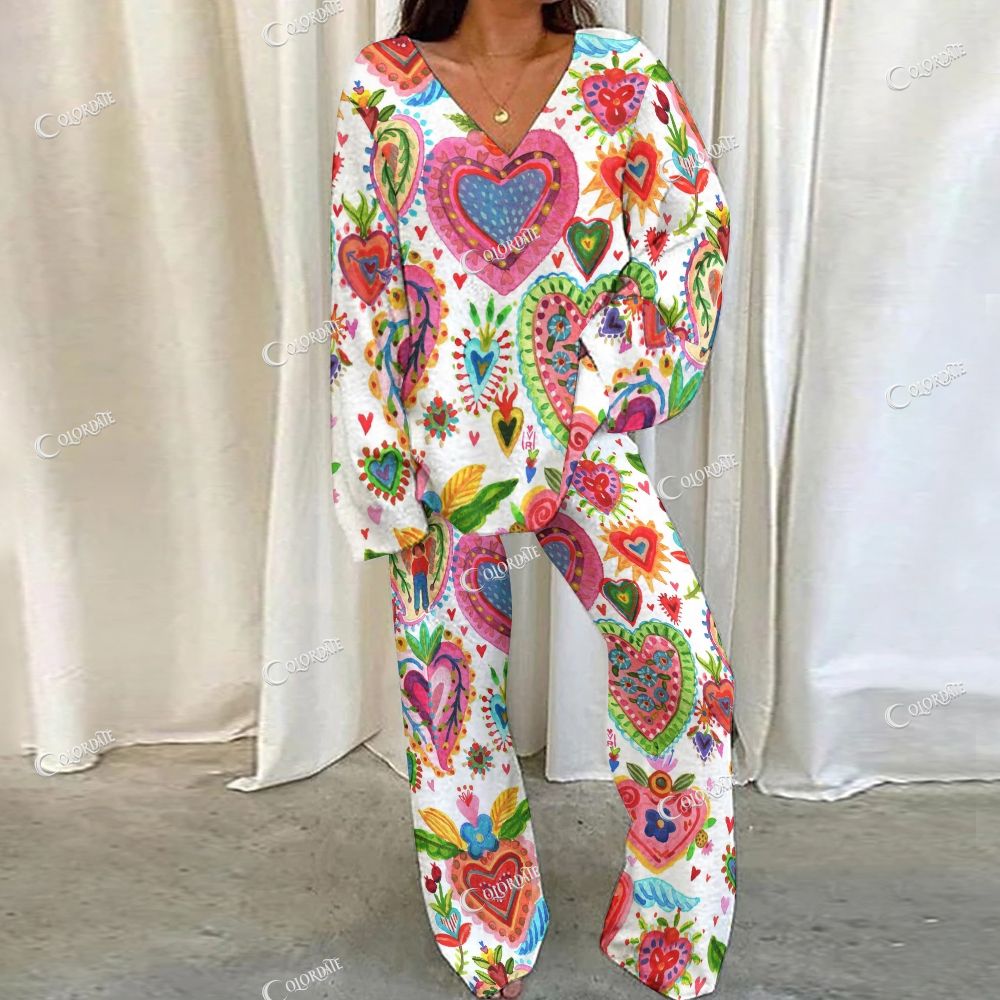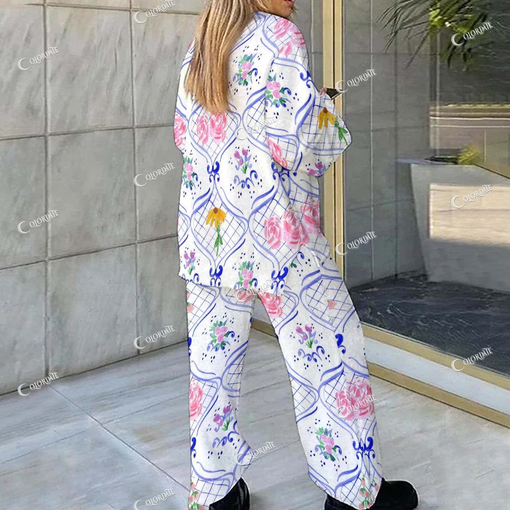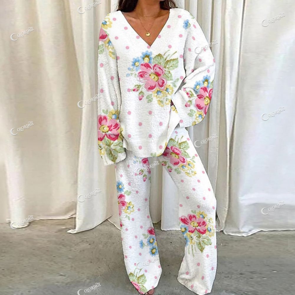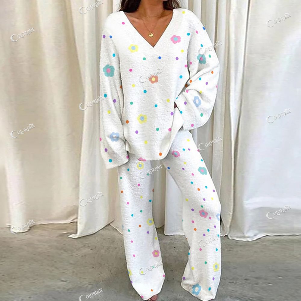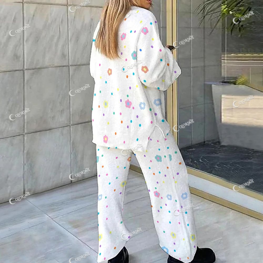 Colorful Dots & Flowers Print Loungewear Set For Women