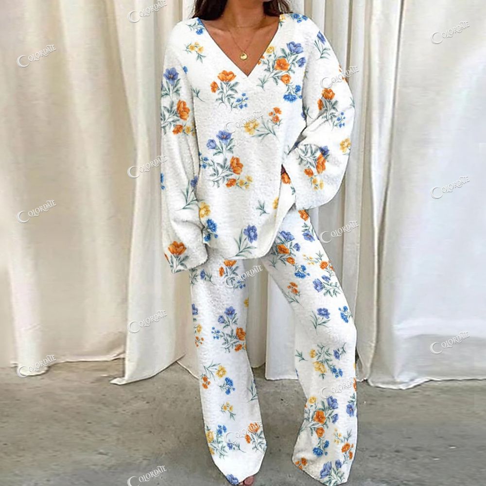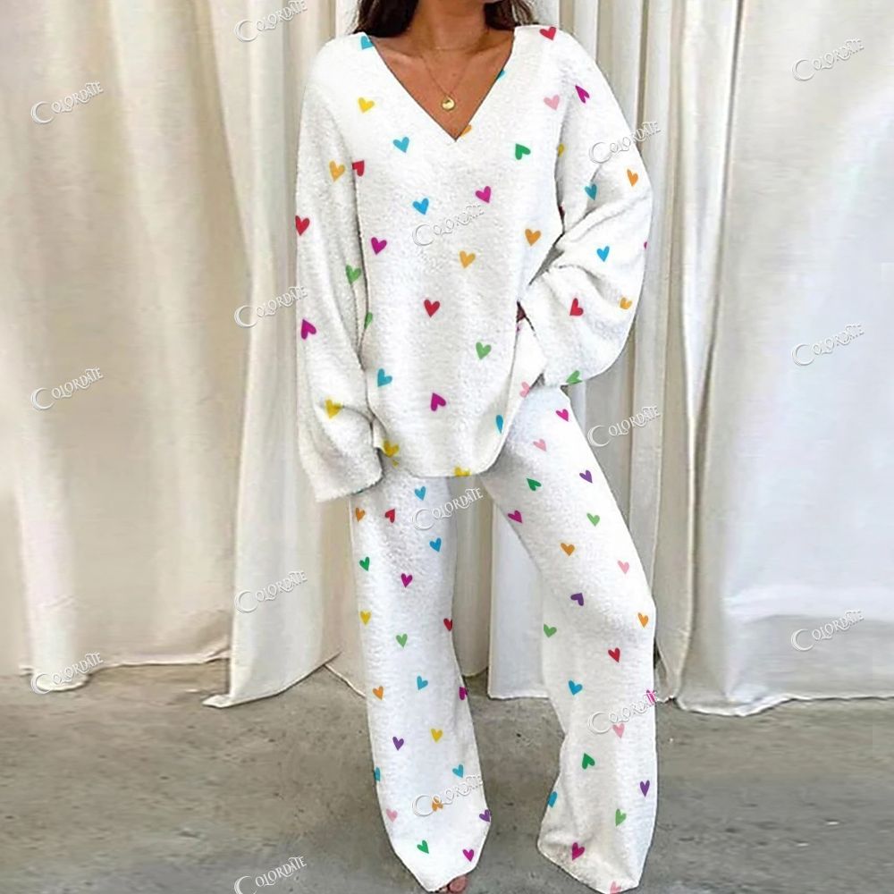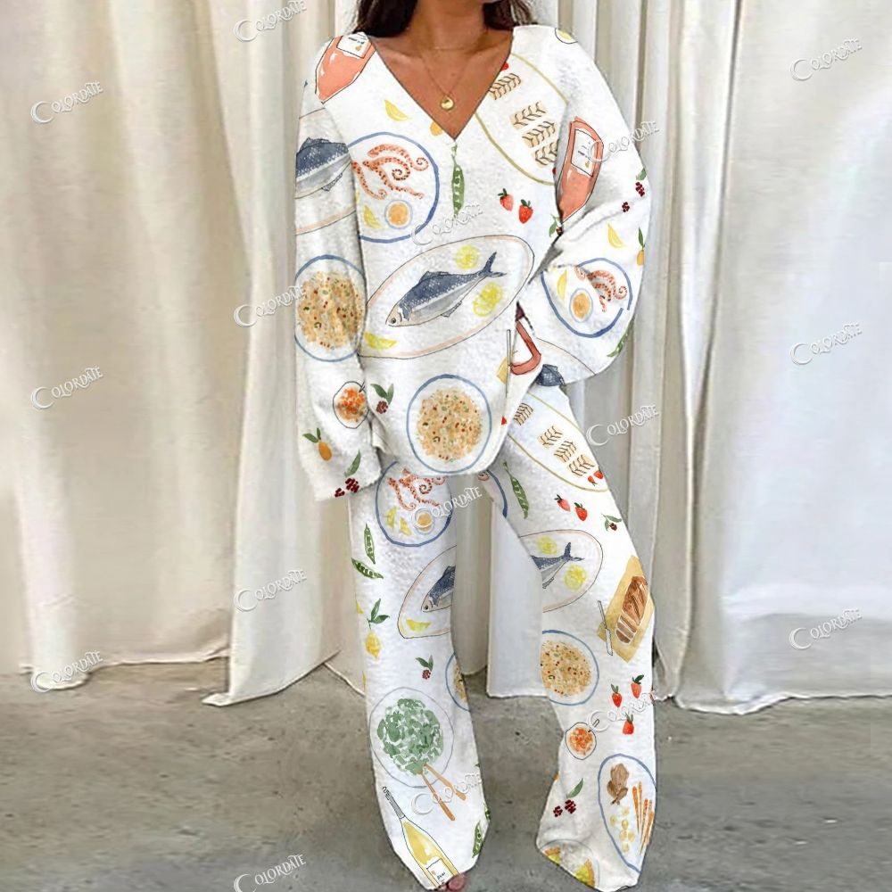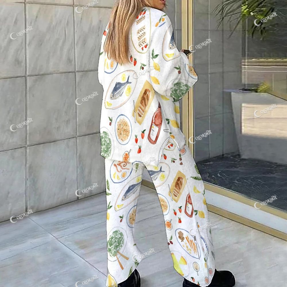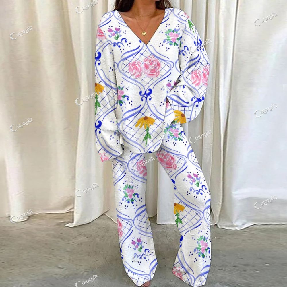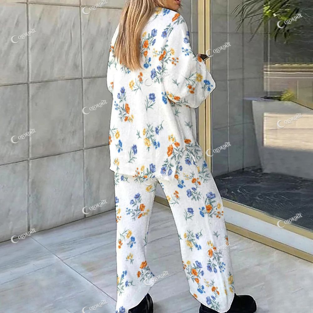 Colorful Dots & Flowers Print Loungewear Set For Women