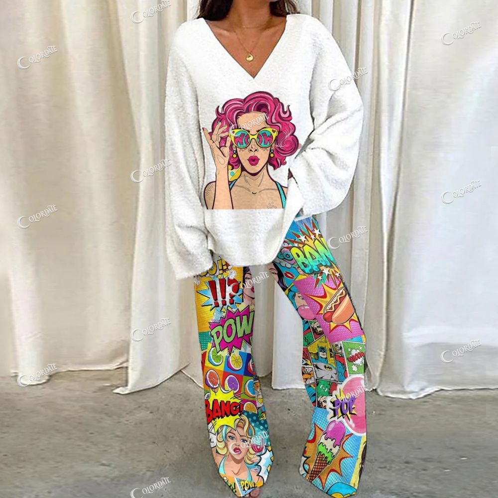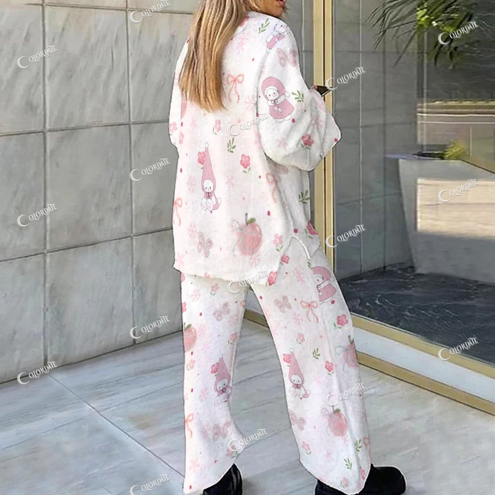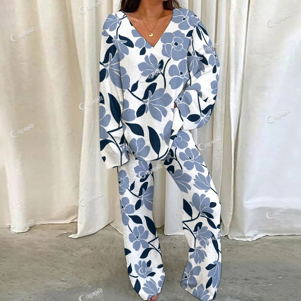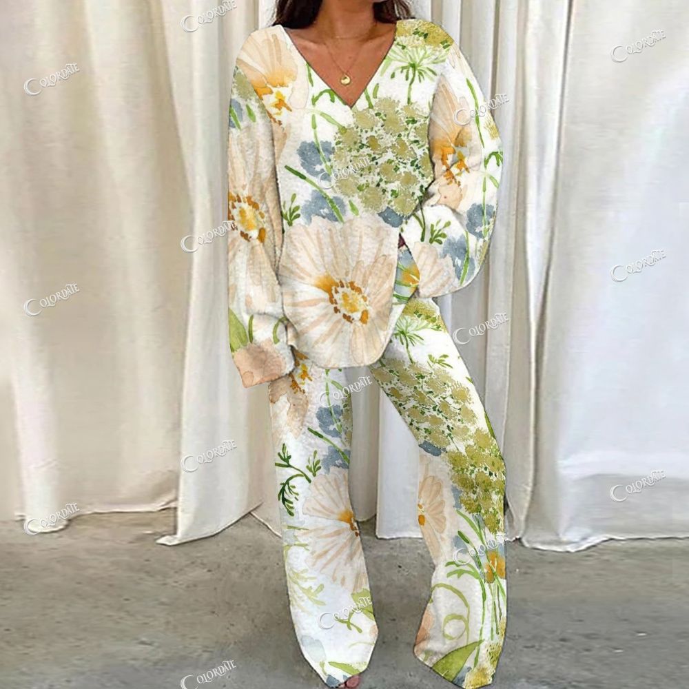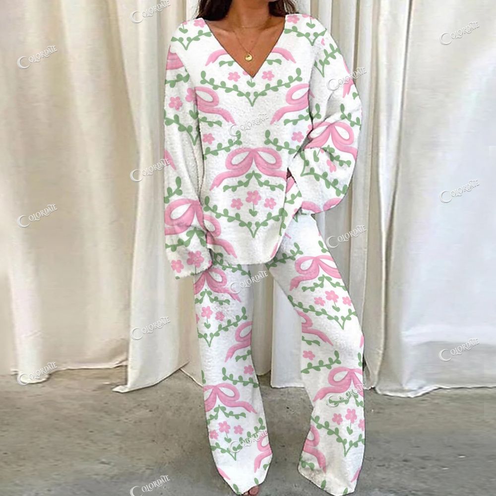 Colorful Dots & Flowers Print Loungewear Set For Women