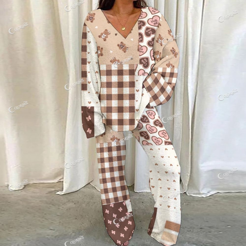 Women's Abstract Brown Wave Long Sleeve Cotton Homewear Set