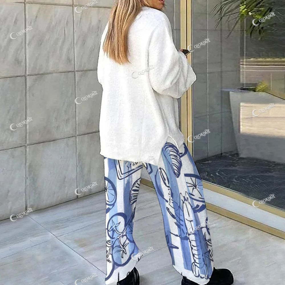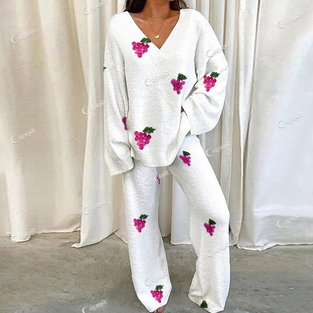 Blueberry & Abstract Line Print Loungewear Set For Women