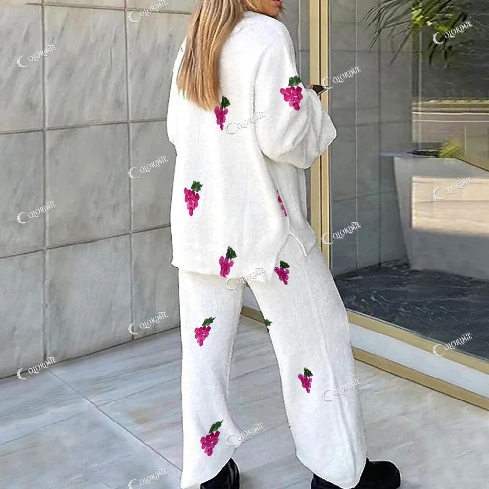 Green Pear & Pink Floral Print Loungewear Set For Women