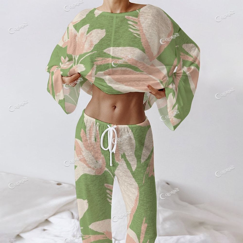 Women's Tropical Leaf Long Sleeve Cotton Homewear Set