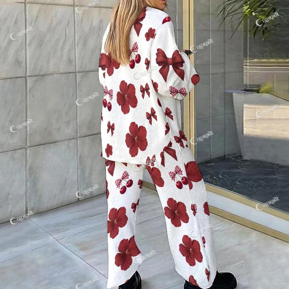 Loungewear Red Romantic Flowers Set For Women