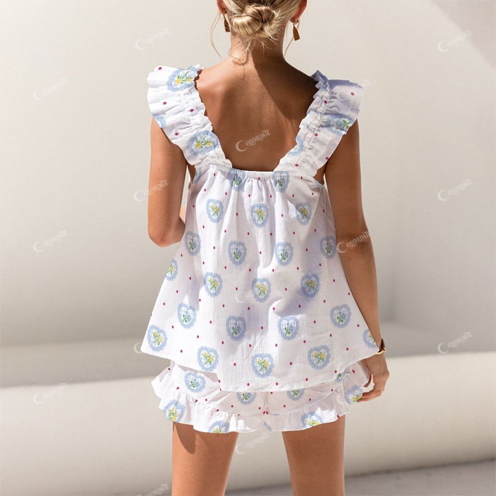 Colordate Bouquets And Heart-Shaped Prints Short Tank Top Shorts Pajama Set