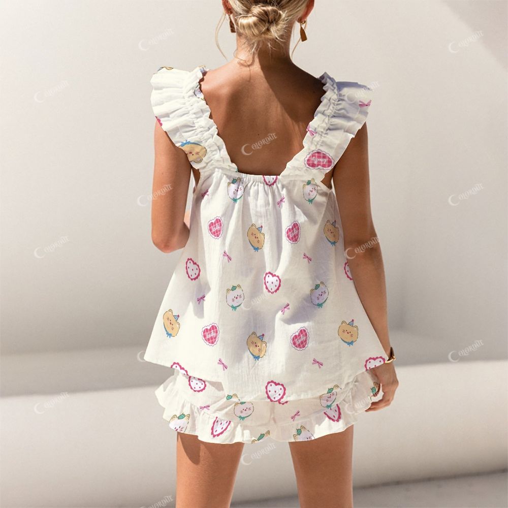 Colordate Heart And Rabbit Prints Short Tank Top Shorts Pajama Set