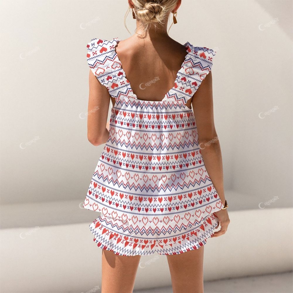 Colordate Pixel Heart Print Short Tank Top Shorts Pajama Set