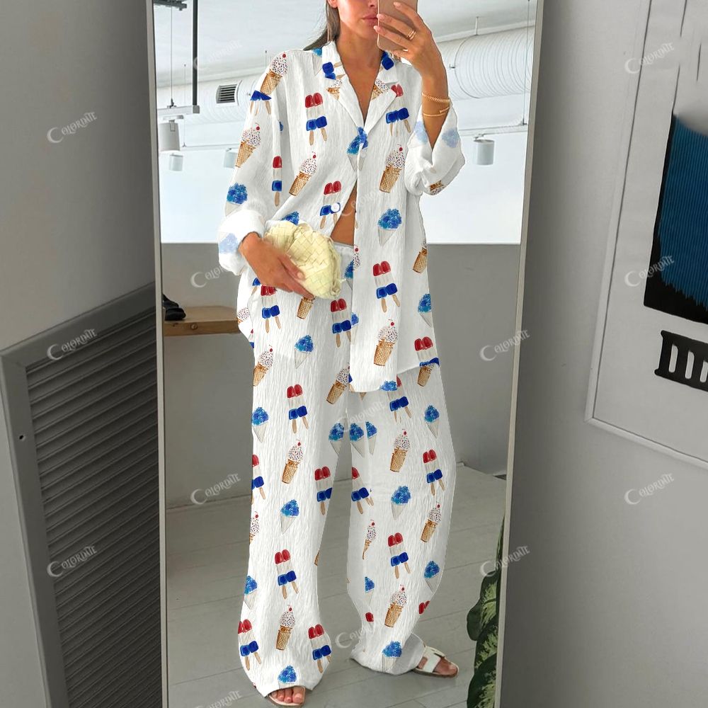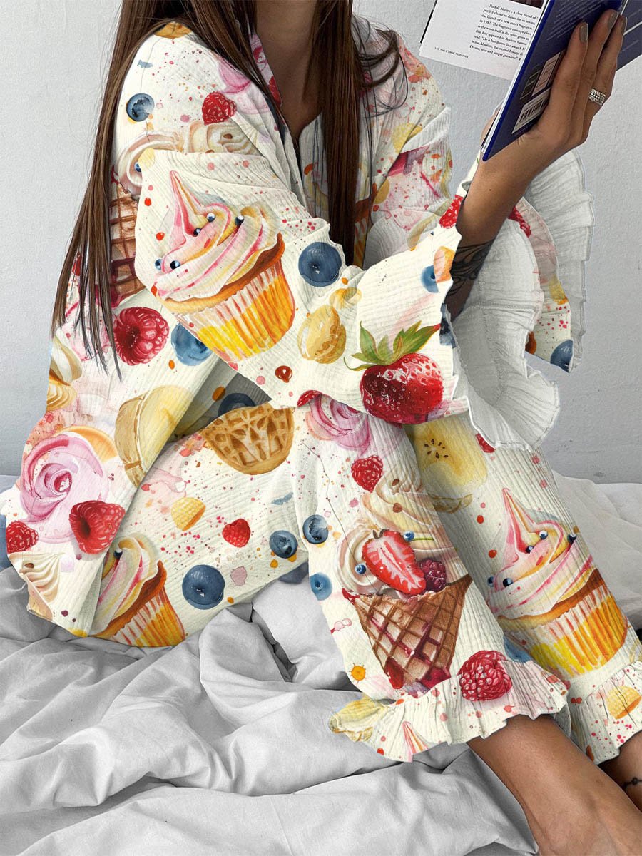 Women's Cool Ice Cream Print Cardigan Homewear Set