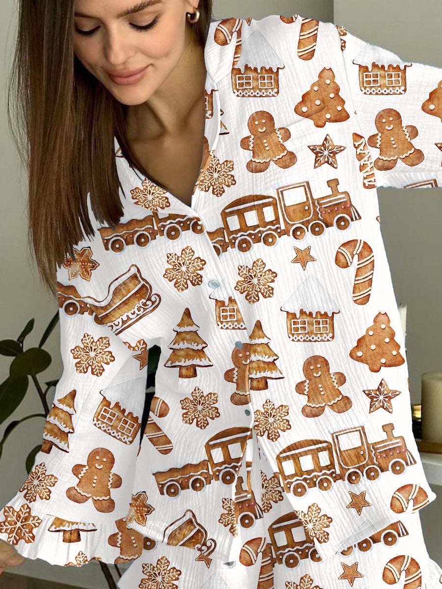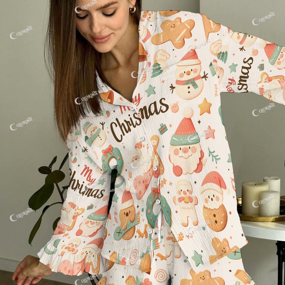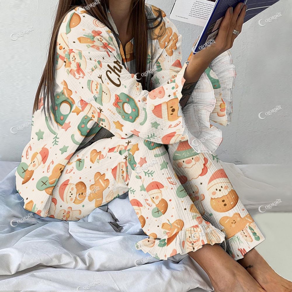 Colordate Women's Christmas Cookies Vintage Printed Suit