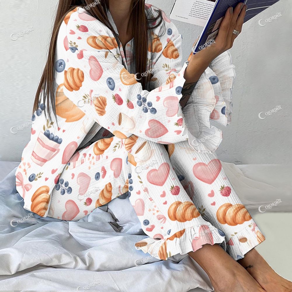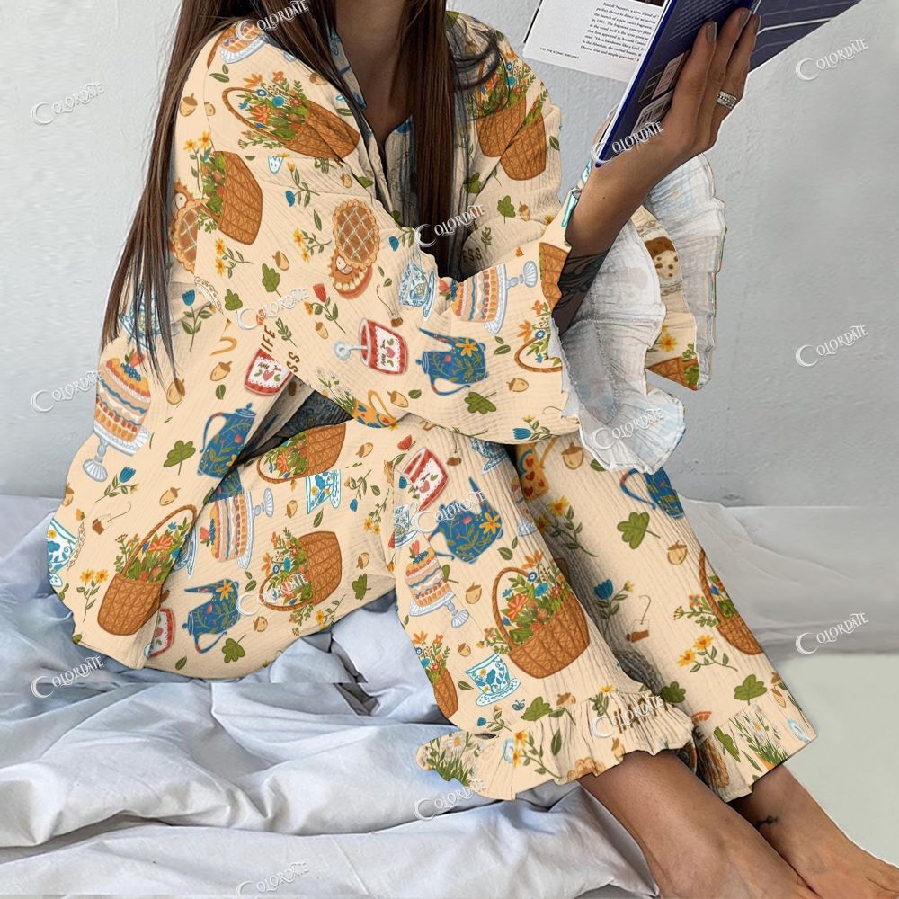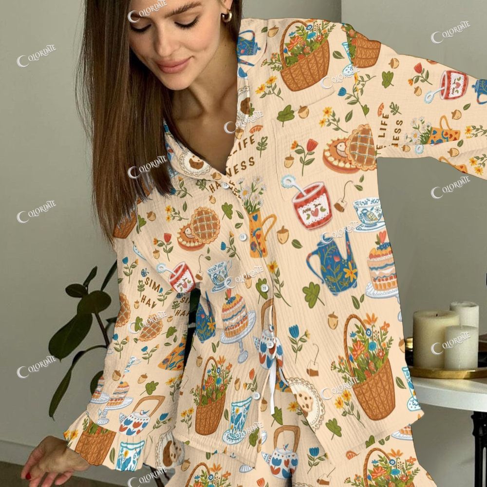 Colordate Afternoon Tea And Floral Prints Loungewear Set For Women