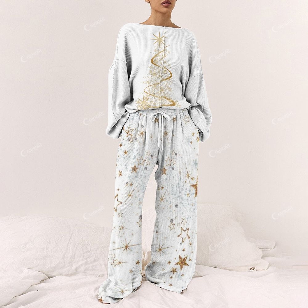Gold Christmas Tree Pattern Women's Print Long Sleeve Pajama Set