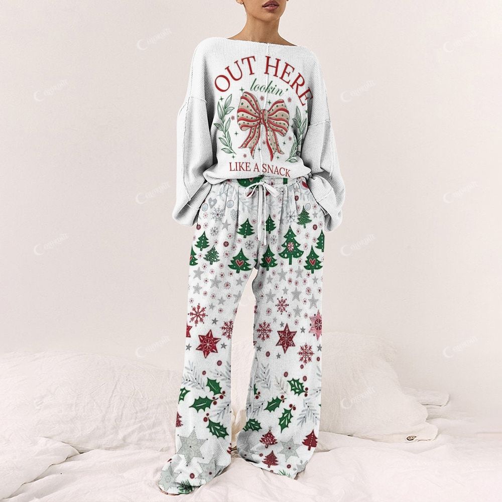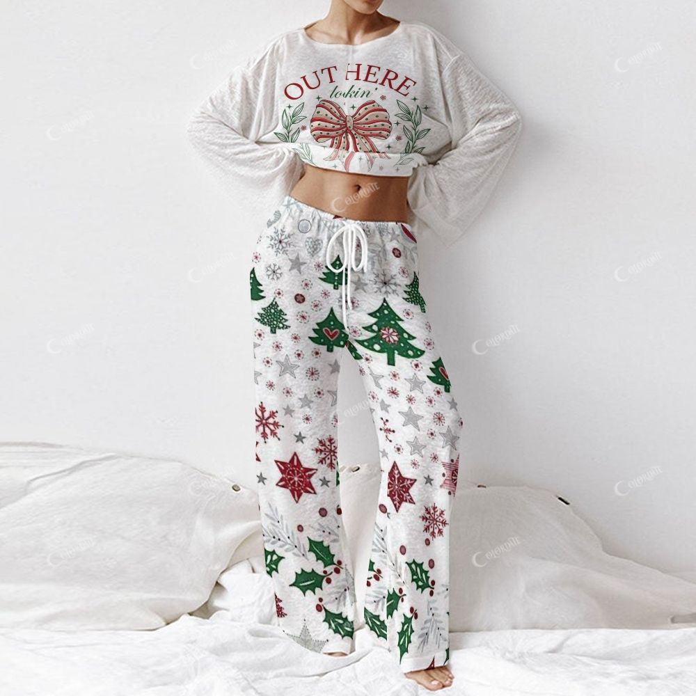 Out Here Bow Holly Women's Print Long Sleeve Pajama Set