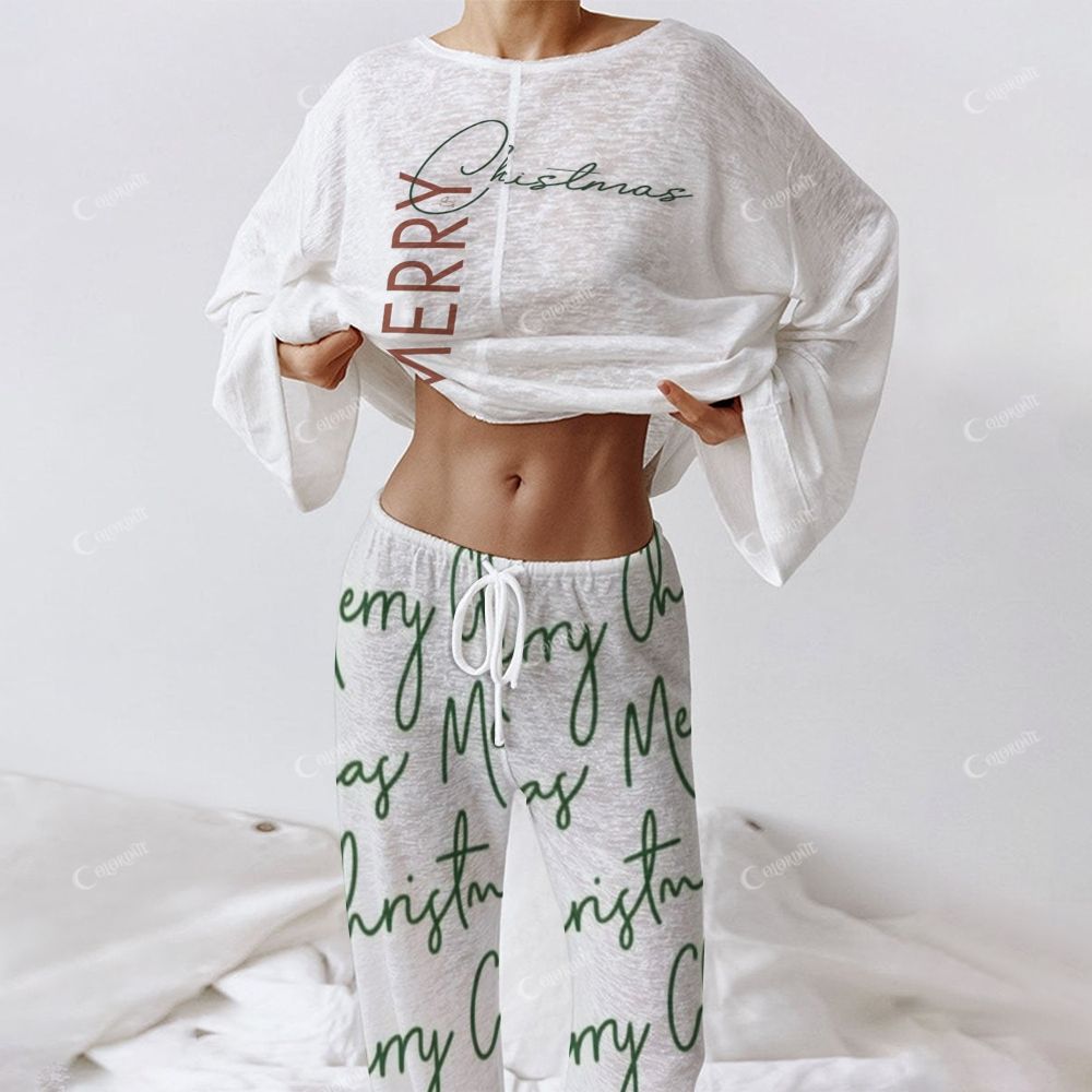 Merry Christmas Scrip Women's Long Sleeve Cotton Homewear Set